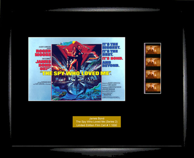 A strip of 35mm film is framed between two clear panels of styrene which allows you to see through the film and the individual frames when held up to the light. Accompanied by a postcard size image of the subject and a numbered title plaque, these cells arrive ready to hang on the wall.